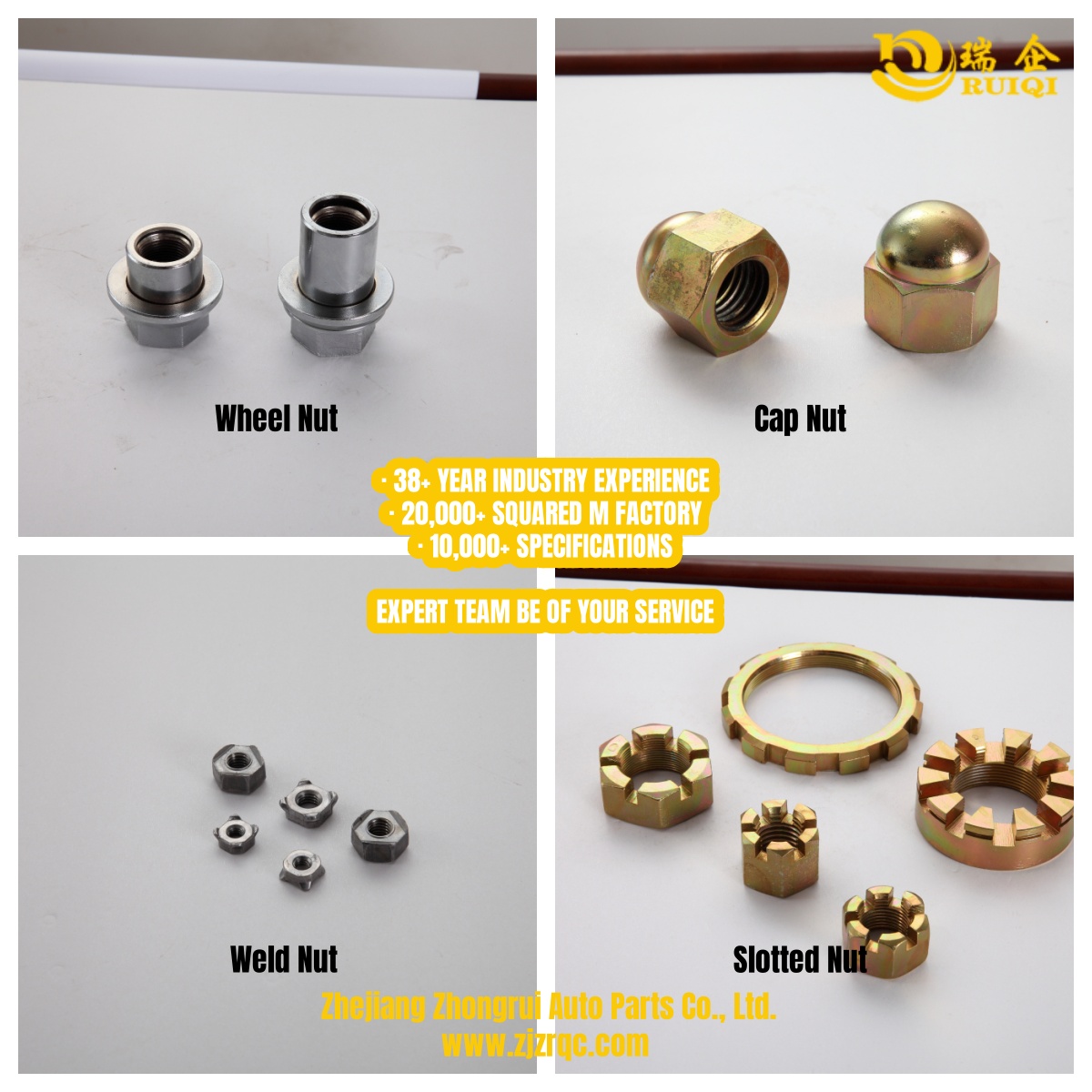 Zabezpiecz swoje połączenia za pomocą naszych precyzyjnych nakrętek: nakrętki koła, nakrętki nasadki, nakrętki spawane i nakrętki szczelinowe | Zhejiang Zhongrui Auto Parts | Zaprojektowane pod kątem niezawodności i wydajności